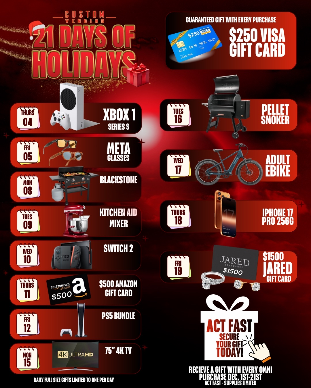 THE OMNI Smart Cooler isn't an ordinary vending machine. Instead, it combines AI-powered vision, secure access, and custom branding to create a self-serve retail experience that's faster, smarter, and fully tailored to your products. Customers will just pay, which unlocks the door, then AI cameras track what's taken, automatically adjusting charges in real time, even if items are returned before closing the door. All purchases can easily be seen on the 8" card reader touchscreen or a cell phone if using a QR code instead of a card reader. Once the customer has grabbed their items, they just close the door, and the payment is finalized. Pay, Grab, and Go!